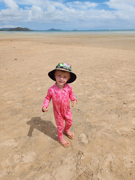 Introducing the Beachy Bub fishing and outdoor romper, designed especially for young children. This adorable, practical romper offers the ultimate sun and insect protection, providing a gentle alternative to sunscreens and insect repellents. Perfect for a day out and about, it lets your little ones explore and play comfortably and stylishly in the great outdoors. Give them the freedom to enjoy every adventure, grab yours today and see the difference in comfort and peace of mind!